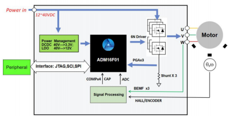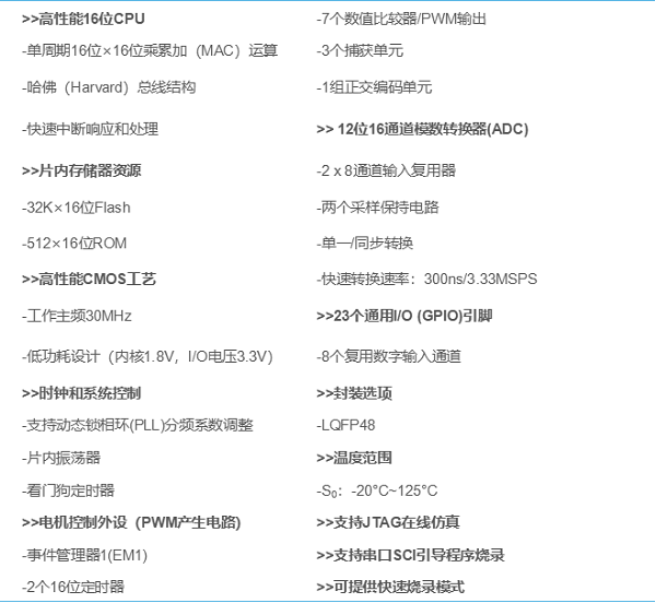 ADP16x器件提供增強型DSP架構(gòu)設(shè)計,以低成本實現(xiàn)低功耗和高性能處理能力。為數(shù)字電機和運動控制應(yīng)用而優(yōu)化的幾種高級外設(shè)已經(jīng)被集成,以提供一個真正的單芯片DSP控制器。與現(xiàn)有的DSP控制器設(shè)備代碼兼容時,ADP16x提供更高的處理性能和更高水平的外設(shè)集成。