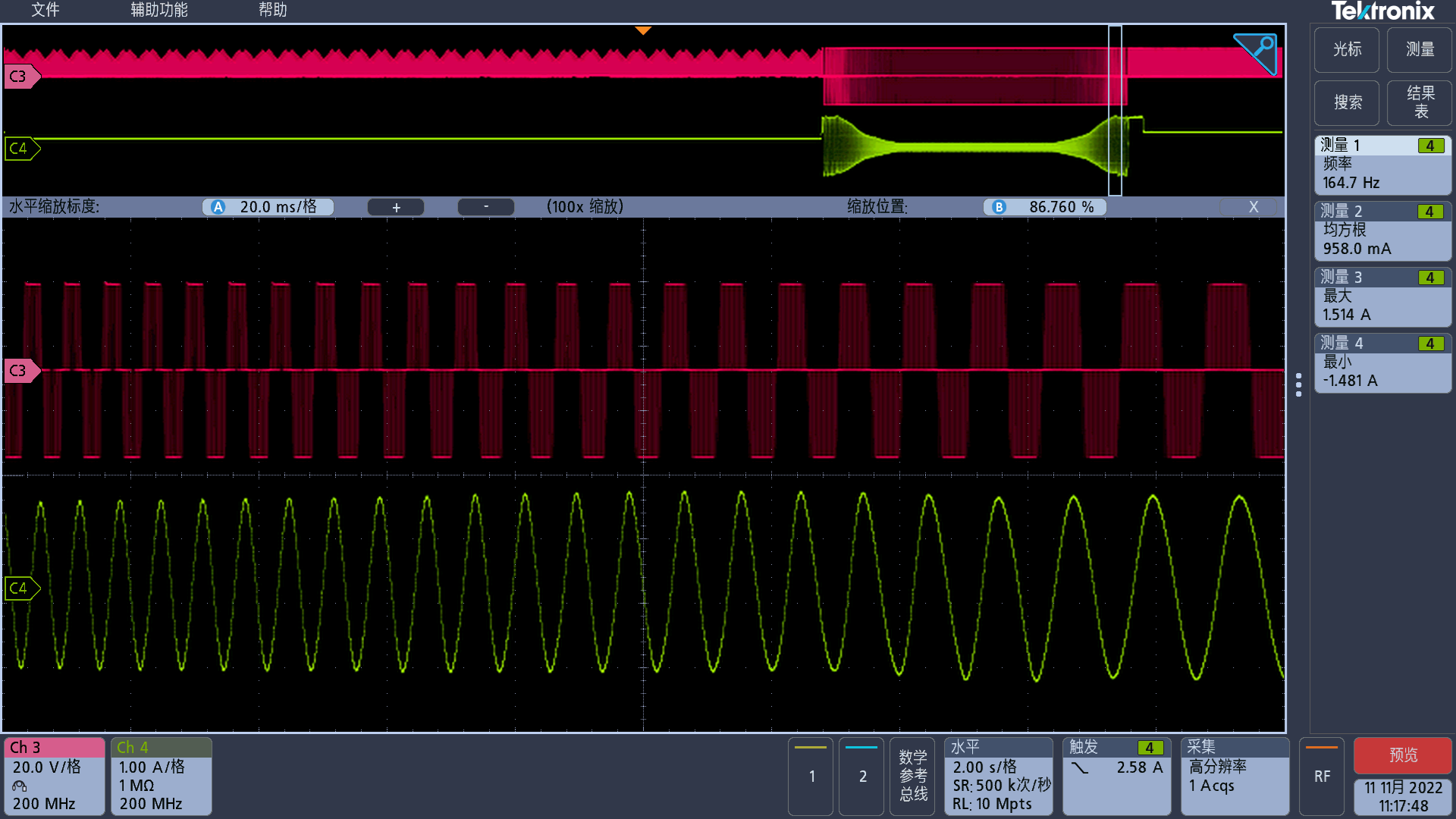 基于以上應用介紹,我司設(shè)計了一塊用于驅(qū)動12V兩相四線步進電機的電子水閥的控制DEMO板。板卡實物圖和實測波形圖如下圖所示: