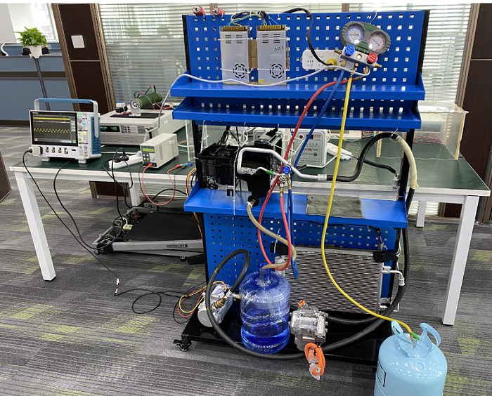 進(jìn)芯電子實(shí)驗(yàn)室具備汽車空調(diào)壓縮機(jī)帶負(fù)載測(cè)試條件,可以實(shí)現(xiàn)自由更換壓縮機(jī)、背壓、平衡壓等測(cè)試條件,下圖是進(jìn)芯電子壓縮機(jī)測(cè)試平臺(tái)。
