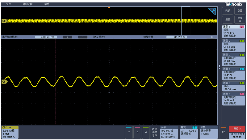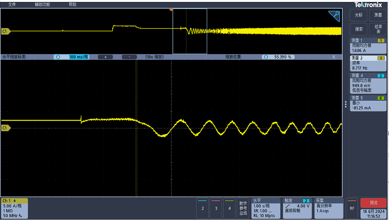 基于以上設(shè)計(jì)思路,我司已推出板級(jí)方案,以下為產(chǎn)品運(yùn)行時(shí)電流波形。