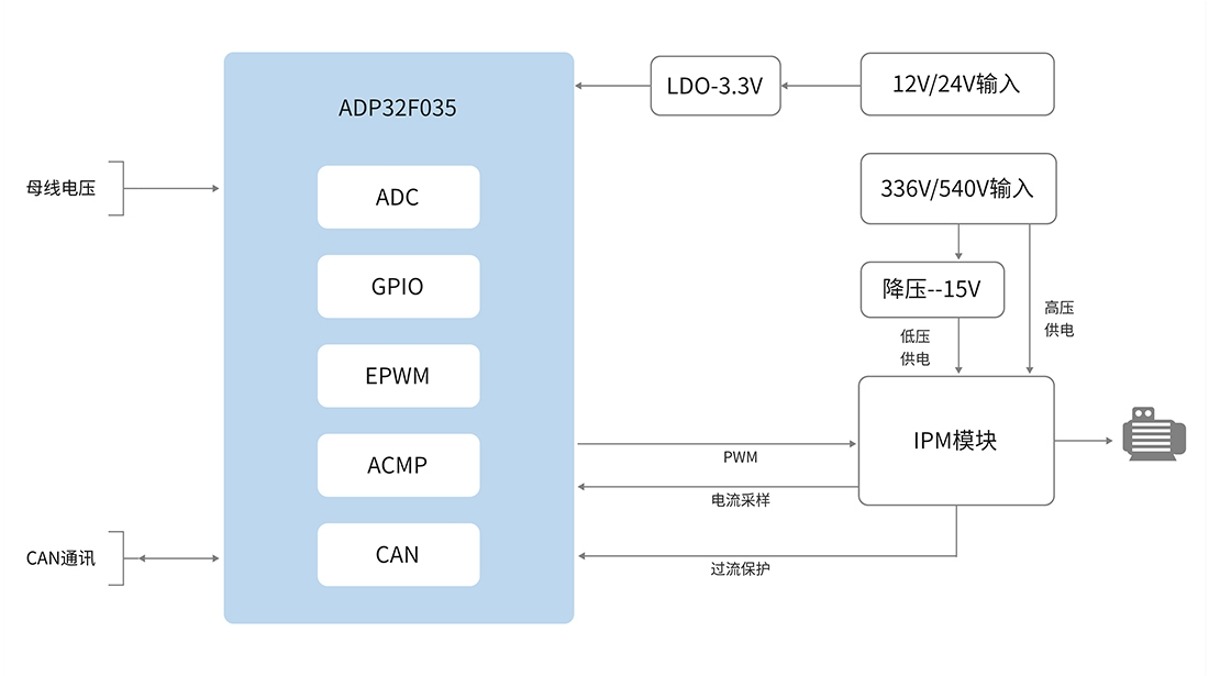 該方案具備強帶載啟動能力,提升了帶載啟動成功率;具有弱磁升速功能,進(jìn)出弱磁平滑;使用自研算法方案,讓電機控制更加平穩(wěn)