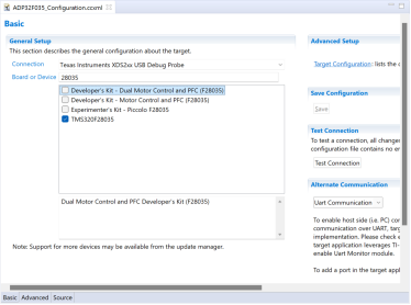 在UniFlash下通過New Configuration新建目標(biāo)配置文件;或選擇已經(jīng)創(chuàng)建好的目標(biāo)配置文件。
