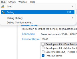 3.選擇 Run->Debug(F11) 或者 Debug As->1 Code Composer Debug Session