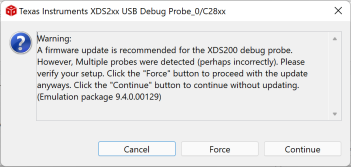 4.仿真器固件更新可能會(huì)報(bào)警 Warning,選擇 Continue