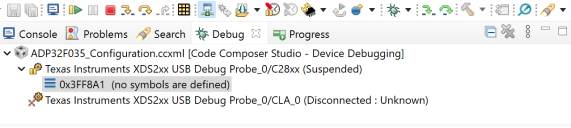 5.隨后會(huì)連接上DSP,在CCS Debug屬性頁,可看到連接狀態(tài)