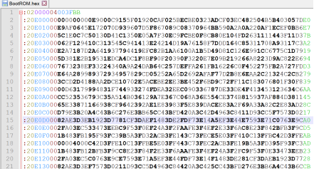 8.打開保存的文件BootROM.hex,可以看到對(duì)應(yīng)格式的內(nèi)存數(shù)據(jù)。