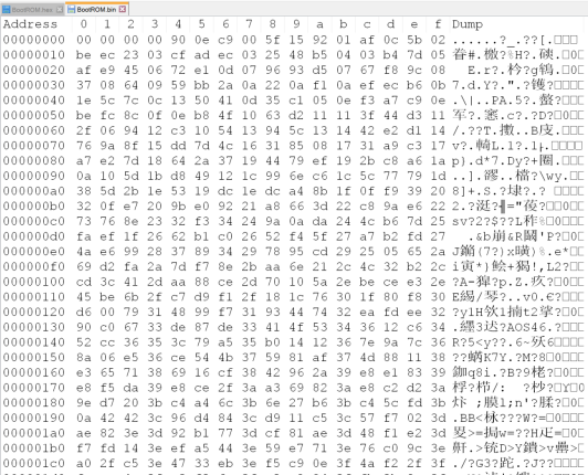 4.打開保存的BootROM.bin,可以看到對(duì)應(yīng)格式的內(nèi)存數(shù)據(jù)。